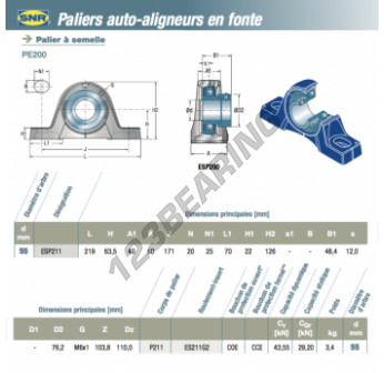 Il Supporto In Ghisa - 2 Fissaggi noto come ESP211-SNR SNR ha un diametro dell'albero di 55 mm e un interasse di 171 mm. Questo numero di parte è prodotto in ghisa e il tipo di serraggio è .