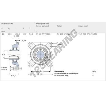 Il Supporto In Ghisa - 4 Fissaggi noto come FY40-TF-VA228-SKF SKF ha un diametro dell'albero di 40 mm e un interasse di 101.5 mm. Questo numero di parte è prodotto in ghisa e il tipo di serraggio è .