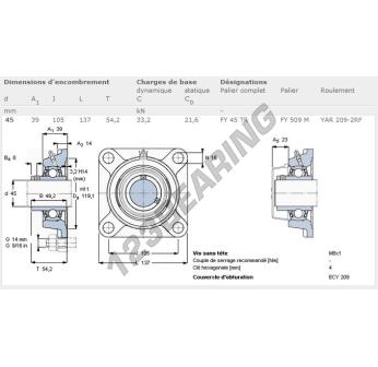Il Supporto In Ghisa - 4 Fissaggi noto come FY45-TR-SKF SKF ha un diametro dell'albero di 45 mm e un interasse di 105 mm. Questo numero di parte è prodotto in ghisa e il tipo di serraggio è .