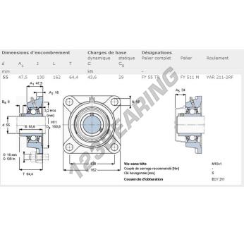 Il Supporto In Ghisa - 4 Fissaggi noto come FY55-TR-SKF SKF ha un diametro dell'albero di 55 mm e un interasse di 130 mm. Questo numero di parte è prodotto in ghisa e il tipo di serraggio è .