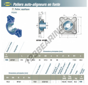 Il Supporto In Ghisa - 4 Fissaggi noto come UCF321-SNR SNR ha un diametro dell'albero di 105 mm e un interasse di 242 mm. Questo numero di parte è prodotto in ghisa e il tipo di serraggio è .