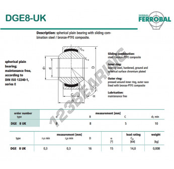 Il Giunti Sferici Geew noto come DGE8-UK-DURBAL DURBAL ha un diametro interno di 8 mm, un diametro esterno di 16 mm e uno spessore di 5 mm.