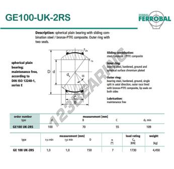 Il Giunti Sferici Geew noto come GE100-UK-2RS-DURBAL DURBAL ha un diametro interno di 100 mm, un diametro esterno di 150 mm e uno spessore di 55 mm.