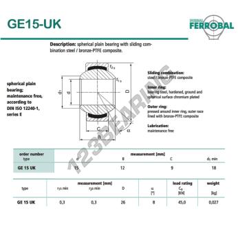 Il Giunti Sferici Geew noto come GE15-UK-DURBAL DURBAL ha un diametro interno di 15 mm, un diametro esterno di 26 mm e uno spessore di 9 mm.