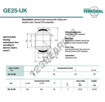 Il Giunti Sferici Geew noto come GE25-UK-DURBAL DURBAL ha un diametro interno di 25 mm, un diametro esterno di 42 mm e uno spessore di 16 mm.