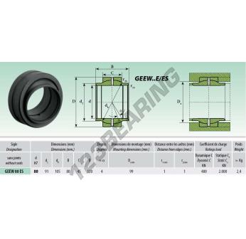Il Giunti Sferici Geew noto come GEEW080-ES Generico ha un diametro interno di 80 mm, un diametro esterno di 120 mm e uno spessore di 80 mm.