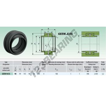 Il Giunti Sferici Geew noto come GEEW090-ES Generico ha un diametro interno di 90 mm, un diametro esterno di 130 mm e uno spessore di 90 mm.