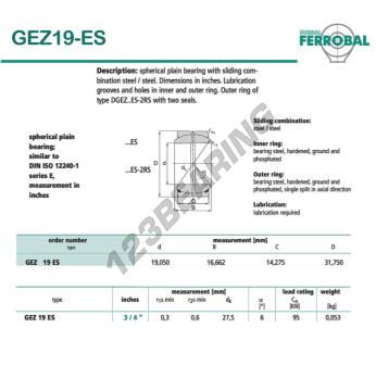 Il Giunti Sferici Geew noto come GEZ19-ES-DURBAL DURBAL ha un diametro interno di 19.05 mm, un diametro esterno di 31.75 mm e uno spessore di 14.275 mm.
