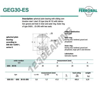 Il Giunti Sferici Geg noto come GEG30-ES-DURBAL DURBAL ha un diametro interno di 30 mm, un diametro esterno di 55 mm e uno spessore di 20 mm.