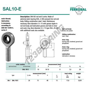Il Giunti Sferici Sa noto come SAL10-E-DURBAL DURBAL ha un passo della vite di , un diametro interno di 10 mm, un diametro esterno di 29 mm e uno spessore di 9 mm.