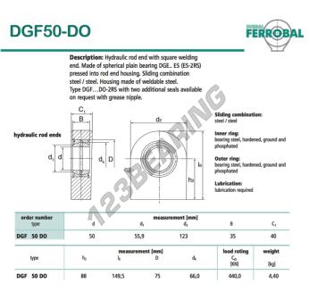 Il Giunti Sferici Tpn noto come DGF50-DO-DURBAL DURBAL ha un diametro interno di 50 mm, un diametro esterno di 123 mm e uno spessore di 40 mm.